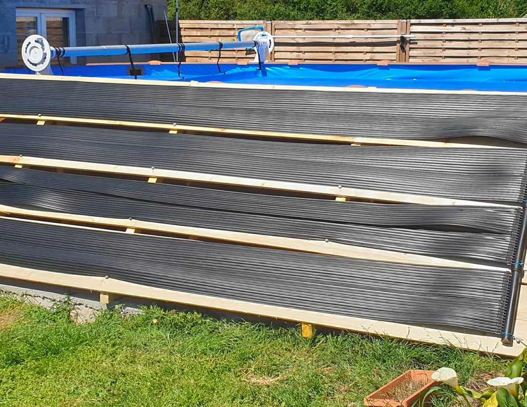- Tapis solaire : Simples et compacts, ils permettent de chauffer de petits volumes (jusqu’à 5m3). Pour une piscine plus grande, il faudra en installer plusieurs, ou opter pour une technologie différente.