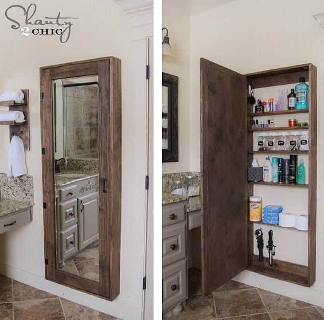 Une autre idĂ©e brillante est de placer un miroir pleine longueur (qui agrandit ensuite optiquement lâespace) qui se cache dans une zone supplĂ©mentaire de stockage.