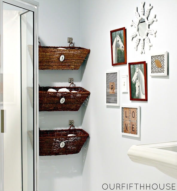 Si vous avez regardé les images précédentes, vous aurez remarqué un autre détail que tous ont en commun : la présence de conteneurs coordonné, dans des couleurs neutres et pendentif avec ceux de la salle de bain.