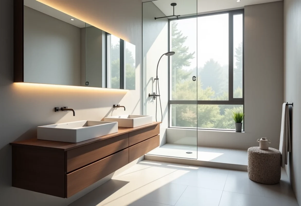 - Grandes salles de bain : Ces meubles apportent une touche de modernité et de légèreté, tout en offrant des espaces de rangement généreux.